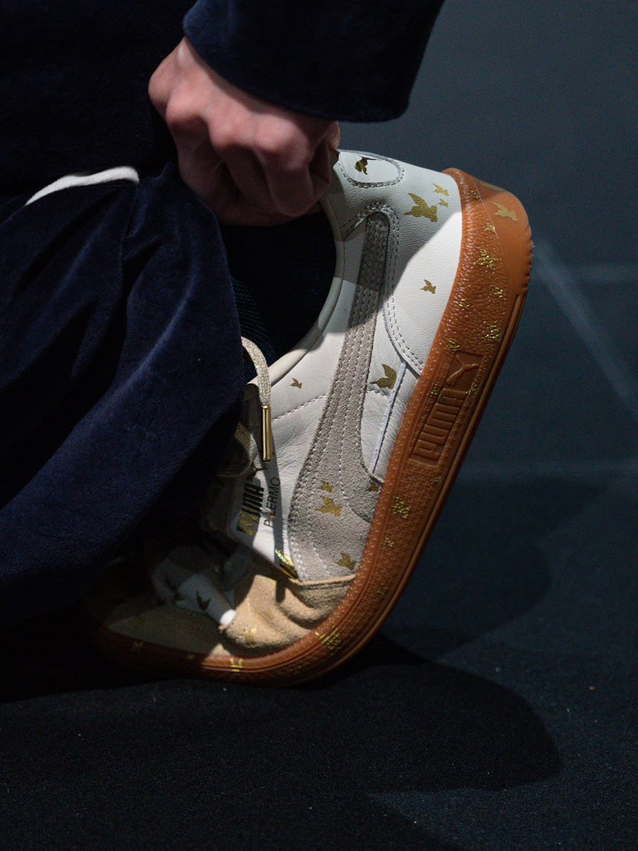 ベースとなったのは1980年代に登場したPalermo、当時サッカーのテラス席(立ち見観戦)で観戦するサポーターたちは好んでPalermoを履いており、加えてスタジアム道具の枠を超えてファッションや音楽、若者文化とも密接にミックスされていったモデルでもあり、いわゆる「テラススタイル」を象徴する一足。