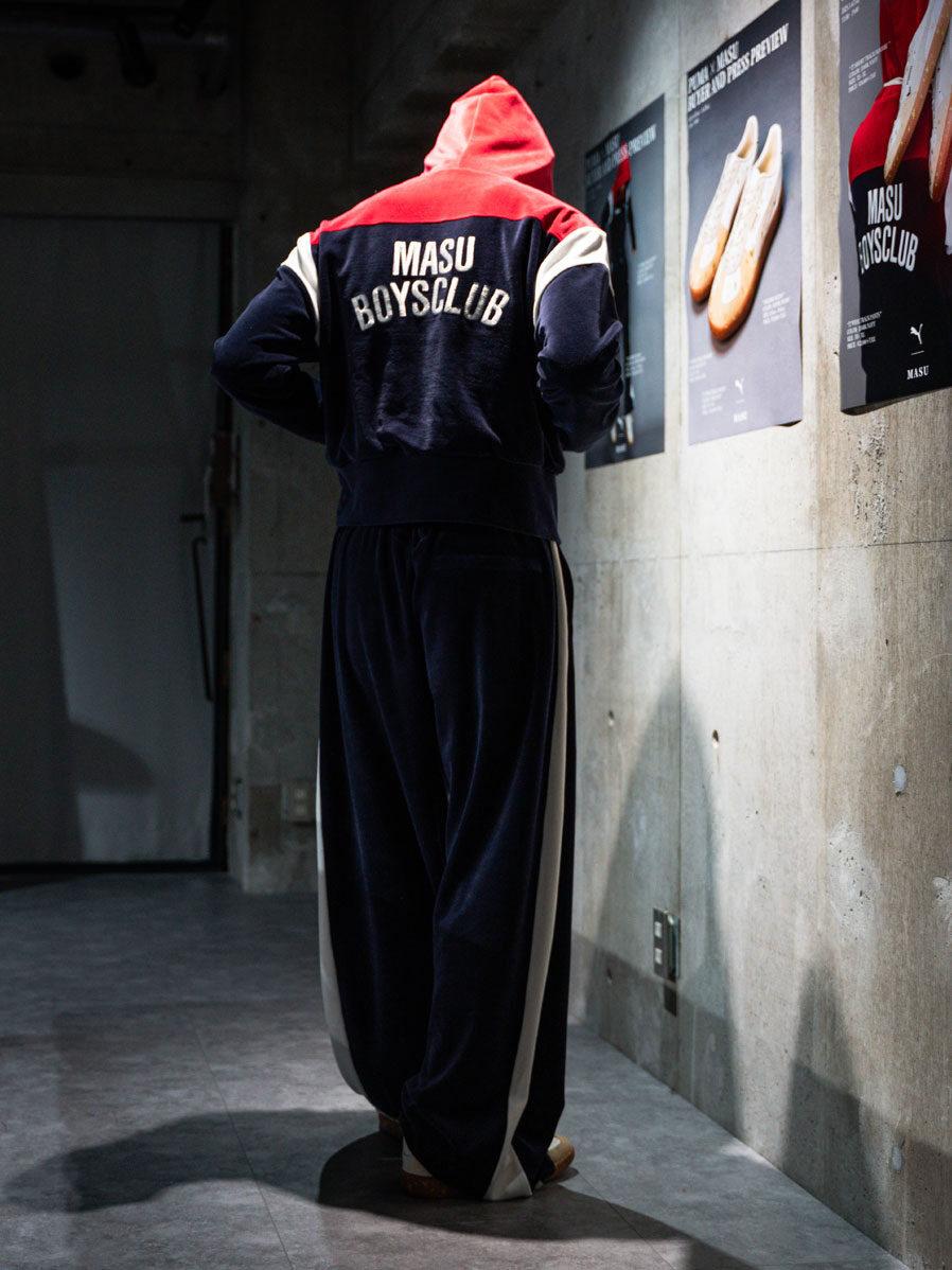 バックには”MASU BOYS CLUB”と4箇所にわたって贅沢に刺繍が用いられている。