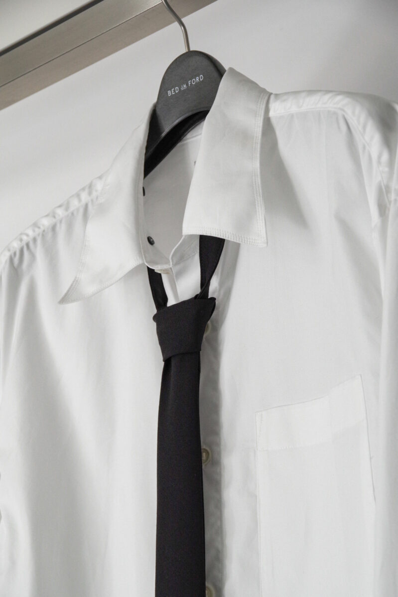 ここまでドレスシャツで遊ぶためには生地はTHOMAS MASONの最高級のシャツでなければ品位が損なわれてしまうし、BED J.W FORDが長年積み重ねた絶妙な塩梅の崩し方でなければ成立しない美しさ。