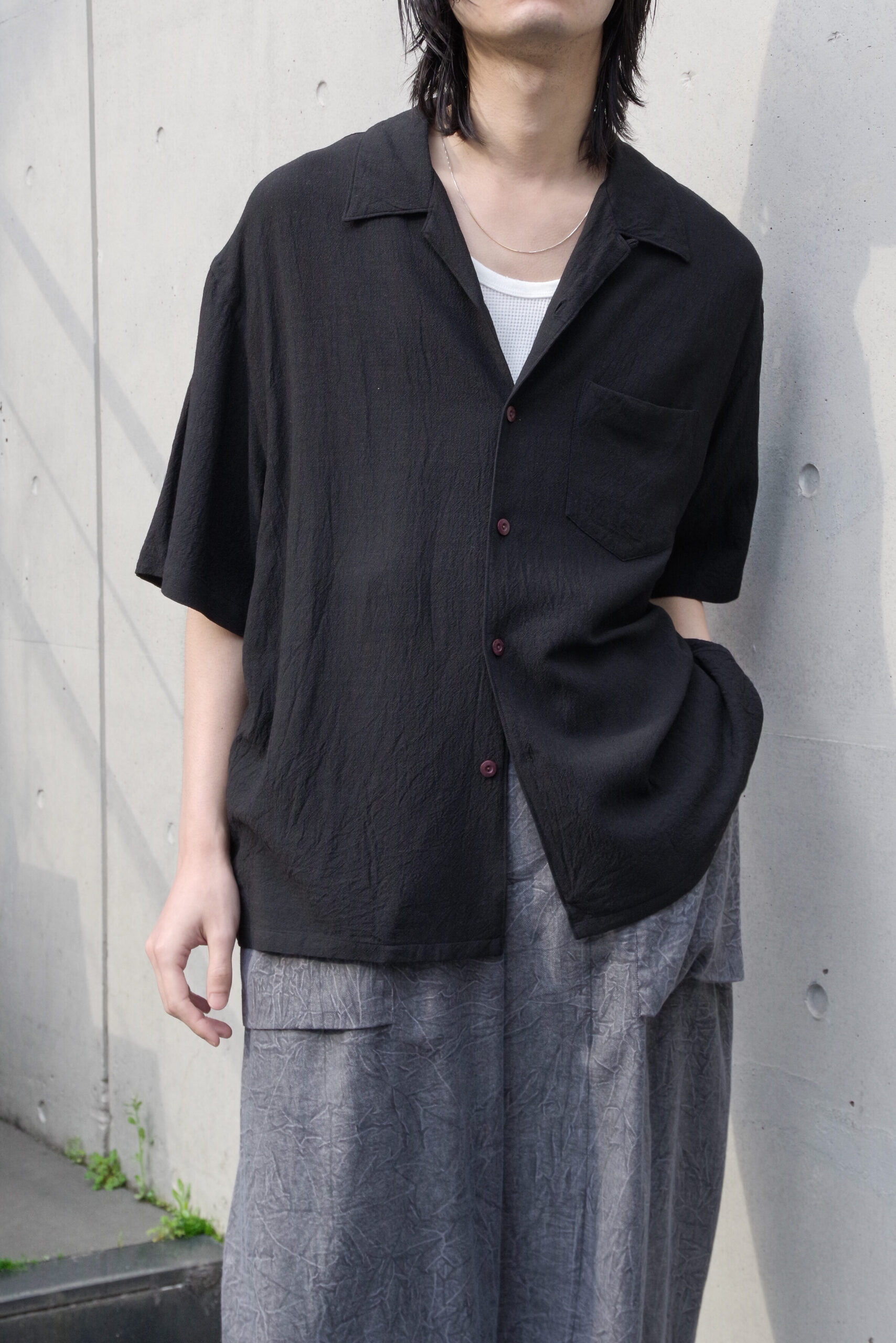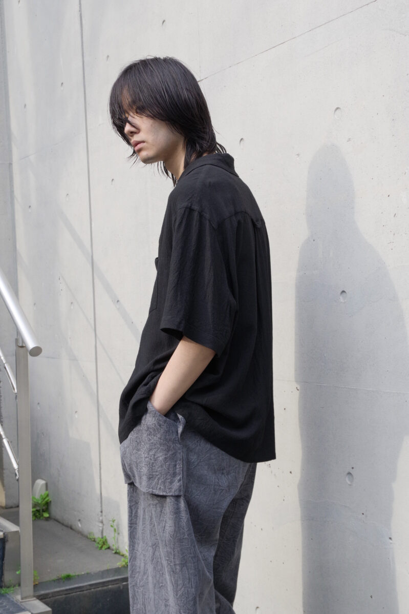半袖シャツでありながら、どこかモードな空気感を漂わせる仕上がりとなっています。