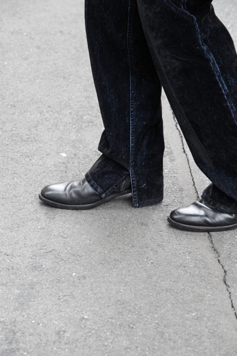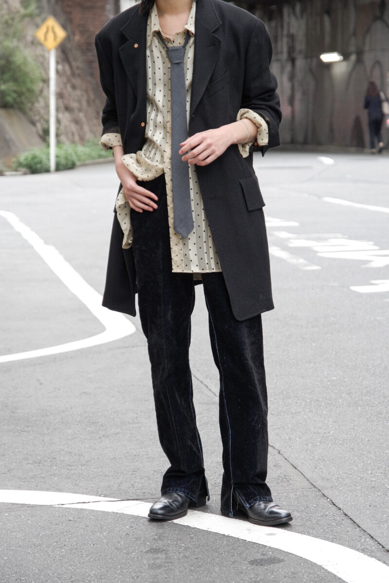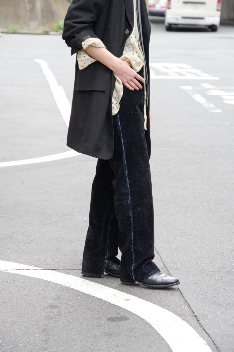 当時すでにもう主流になり初めだったワイドパンツのトレンドには目もくれなかった。